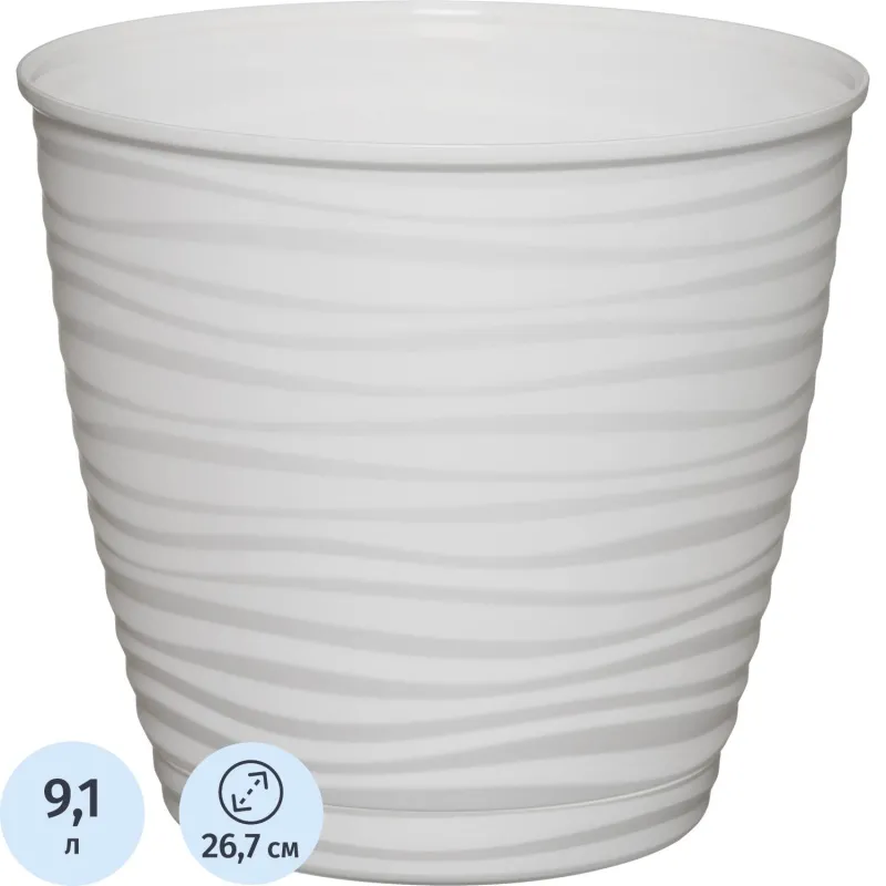 Горшок д/цветов Saffron D267мм, 9,1л с поддоном (белый), 221610429