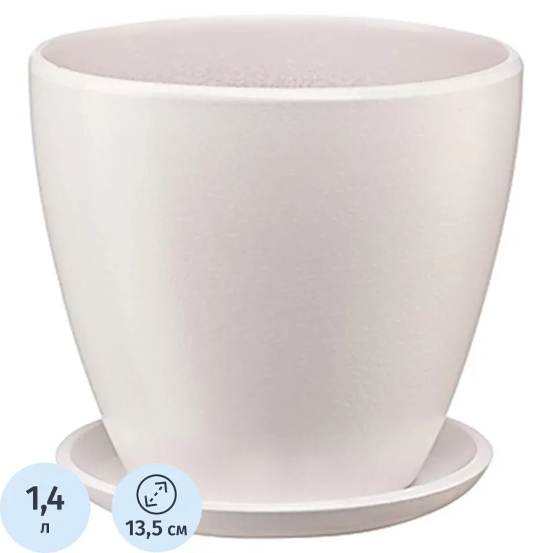Горшок керамич.Бутонс подстав.,1,4л.,Д135 Ш135 В130,молочно-белый,BH-35-1