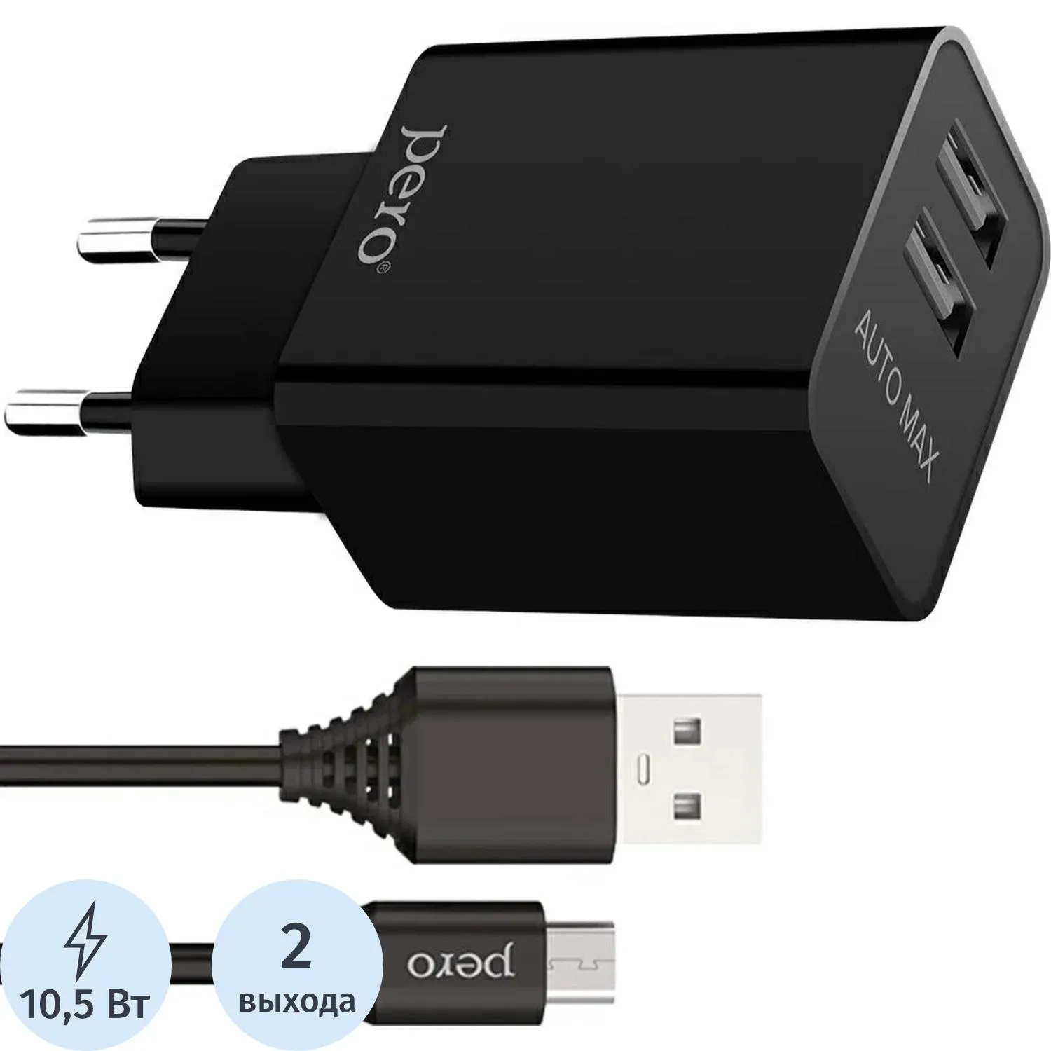 Зарядное устройство сет. PERO TC02 2USB 2.1A c каб. Micro USB черный