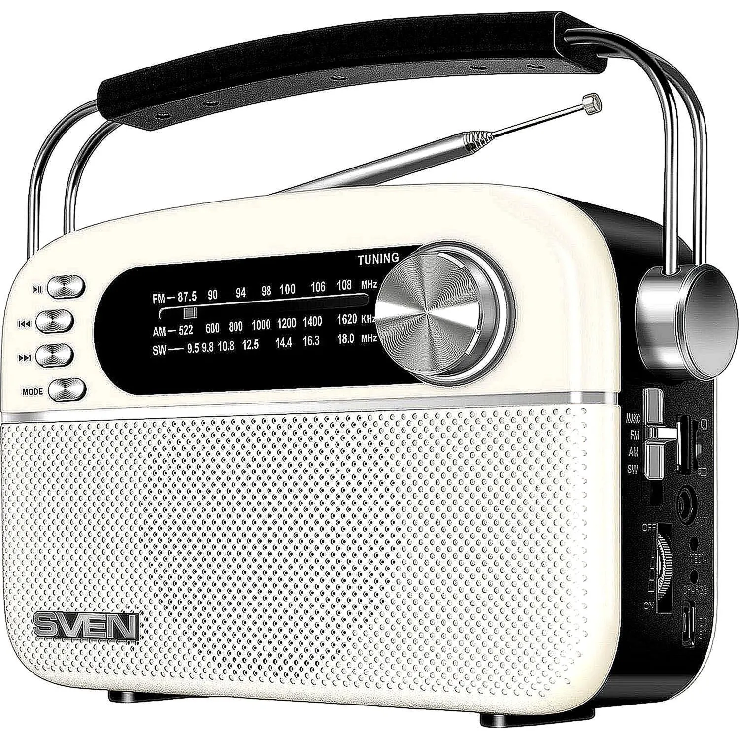 Радиоприемник SVEN SRP-505, белый, 3 Вт (RMS), Bluetooth, FM/AM/SW, USB