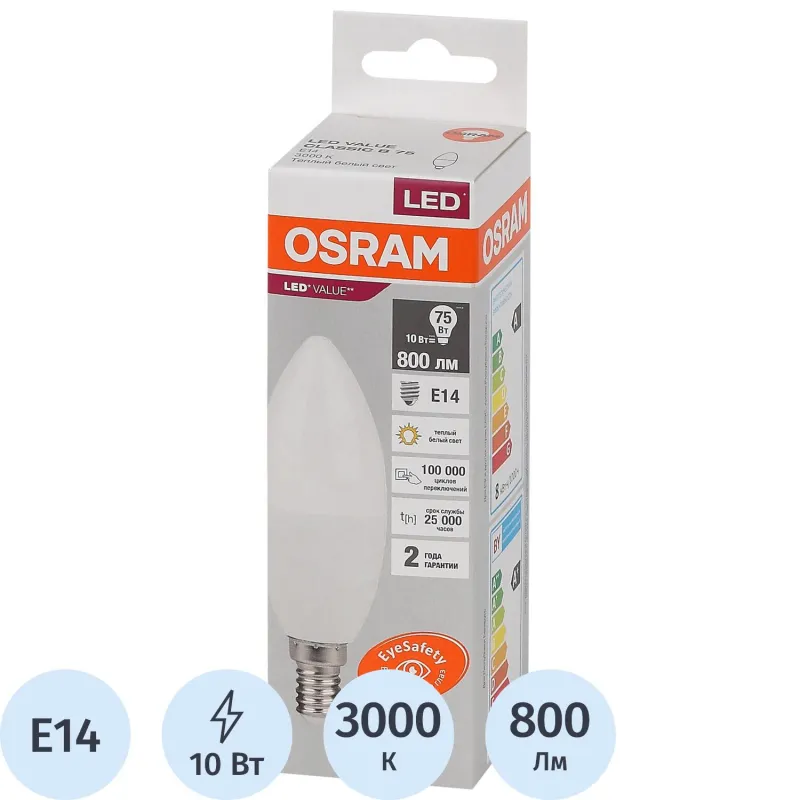 Лампа светодиодная OSRAM LED Value B, 10Вт, 3000К Е14 (579125)