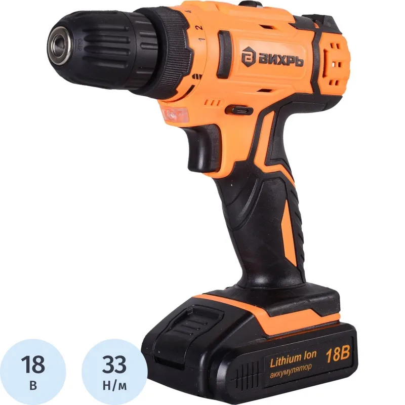 Дрель-шуруповерт аккумуляторная ВИХРЬ ДА-18Л-2КА 1,5 А/ч (72/14/25)