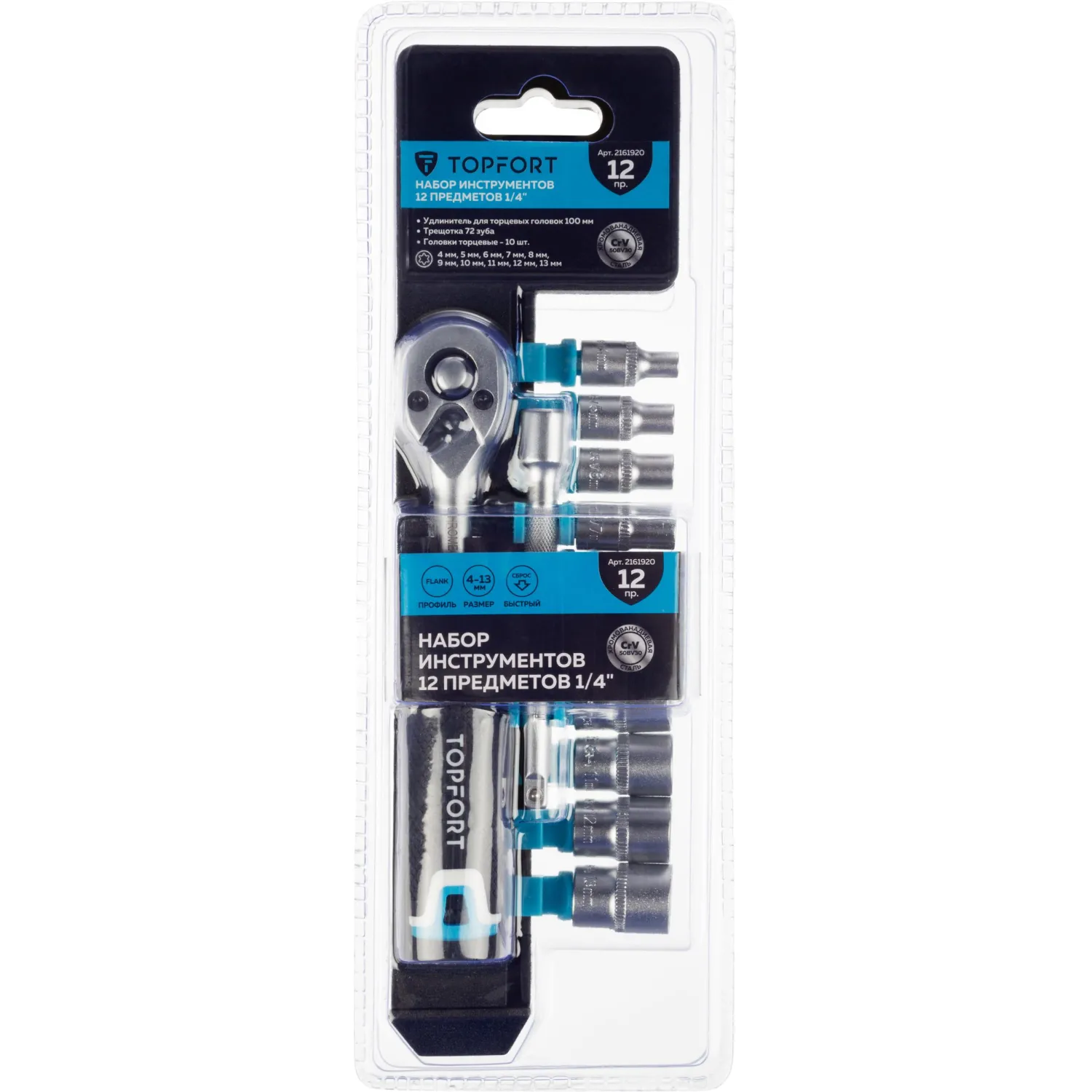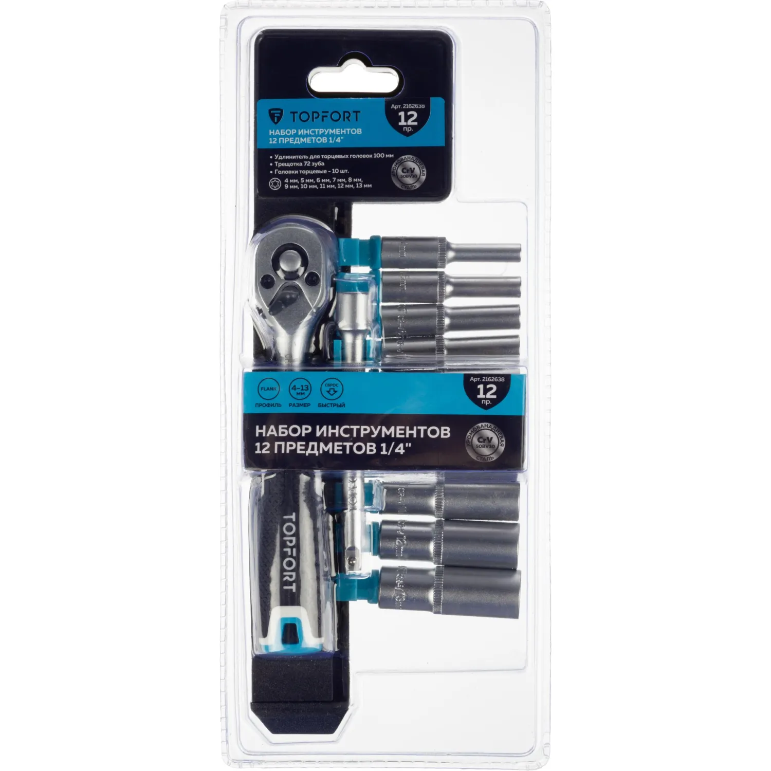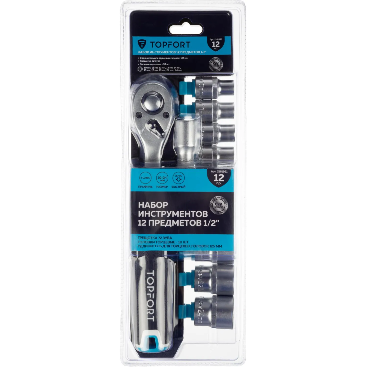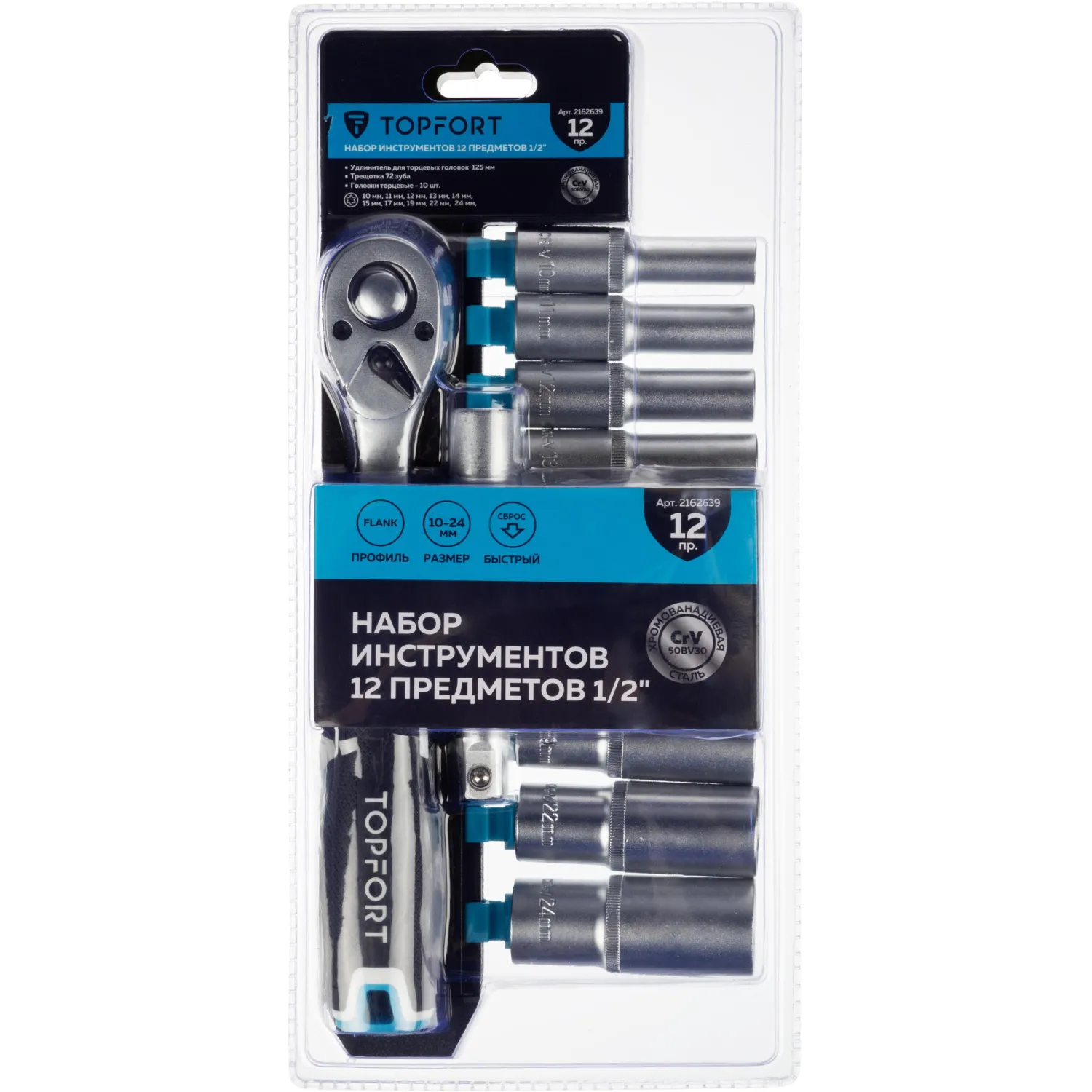 Набор торцевых головок с трещоткой Topfort 12 предмета 1/2 (27650-H12)