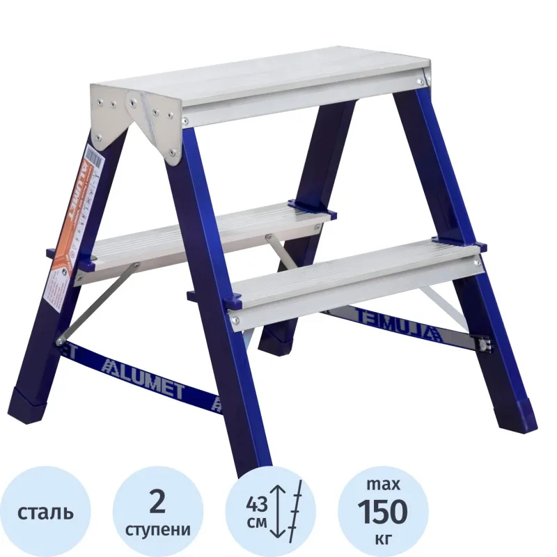 Стремянка Алюмет двухсторонняя алюминиевая 2 ст. AD7202