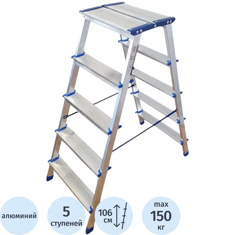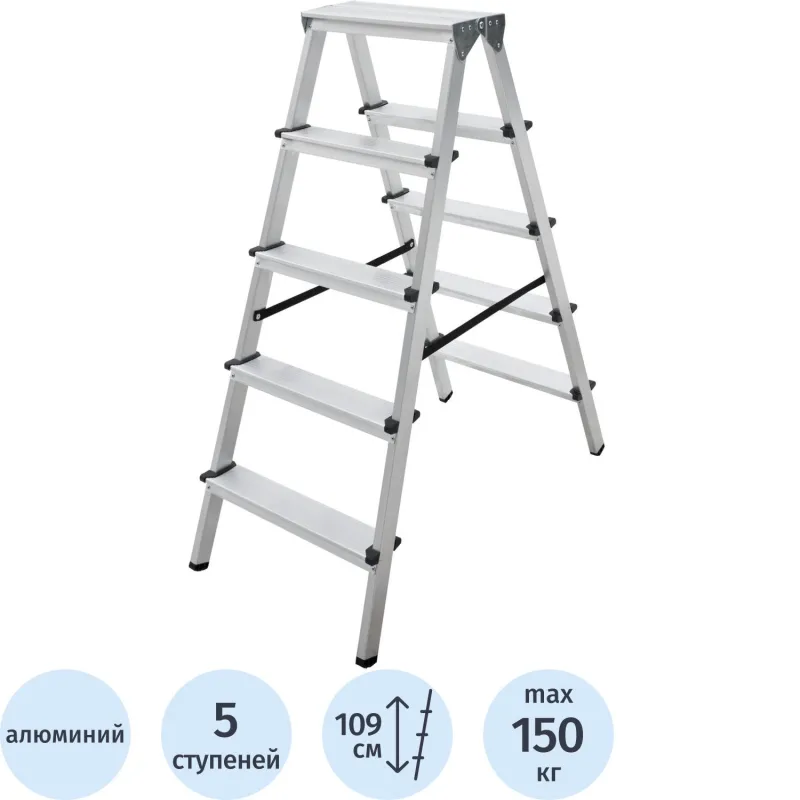 Стремянка ал. двухсторонняя Новая Высота NV 1120, 2х5 ступ. 80 мм 1120205