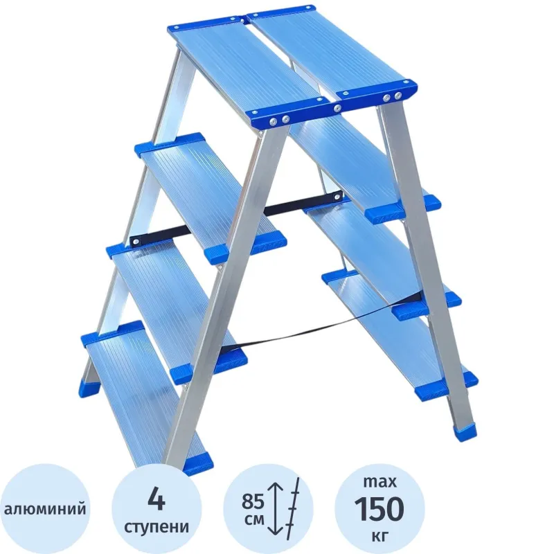 Стремянка двухстор алюм широк площадка и ступени 4ст TARKO 114204е