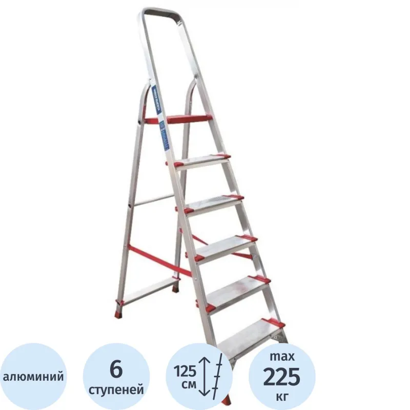 Стремянка алюминиевая усиленная 225 кг 6ступеней(130мм)Новая Высота 3117106