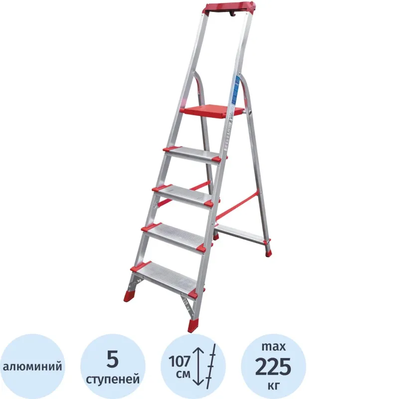 Стремянка ал. Новая Высота NV 3118, 1х5 ступ. 130 мм, органайзер 3118105