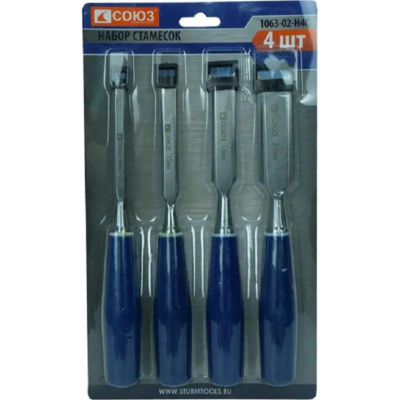 Набор стамесок 6, 12, 18, 24 мм УГЛЕРОД СТАЛЬ 50 HRC СОЮЗ 1063-02-H4C