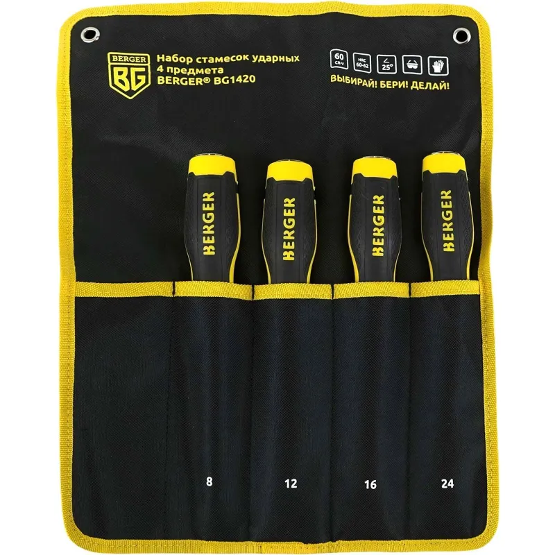 Набор стамесок для обработки древесины, 4 шт:8,12,16,24 мм, BERGER BG1420