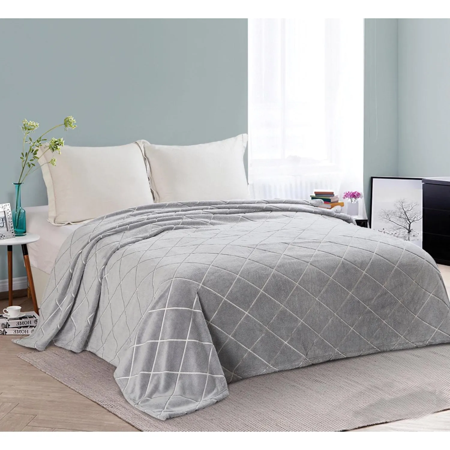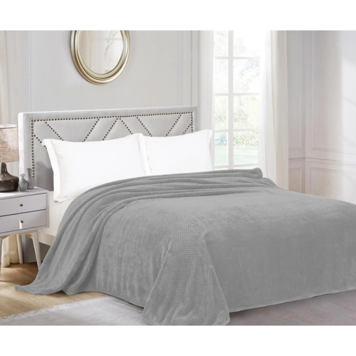 Плед велсофт 200х220см графит тиснение 260гр 19-4215 G