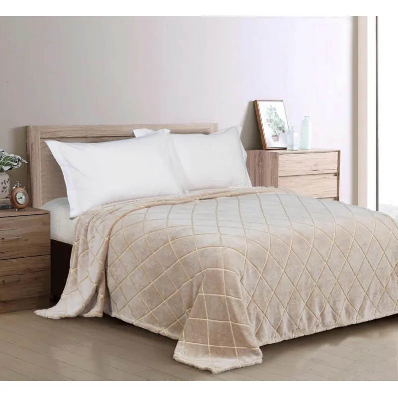 Плед велсофт 200х220см 260гр Бежевый ромб 16-1318 G