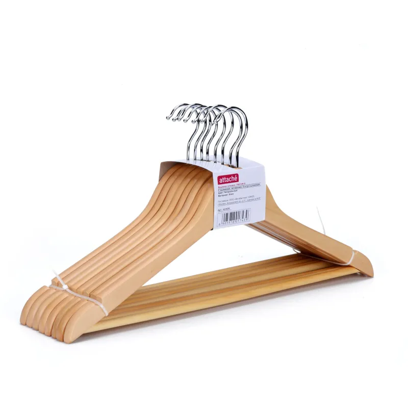 Вешалка-плечики WW_ Attache F6601N-8/LH018 дер,выемки,р48-50 натур.,УП 8 шт