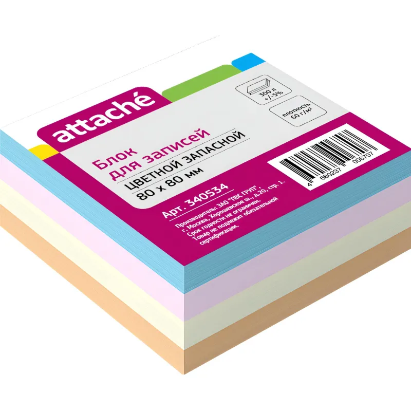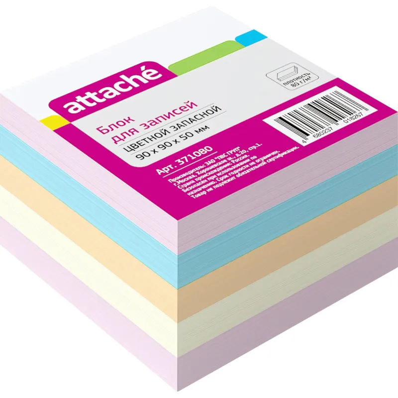 Блок для записей ATTACHE запасной 9х9х5 разноцветный 80г