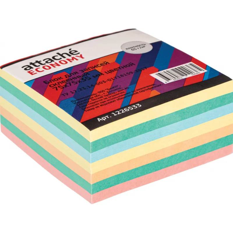 Блок для записей Attache Economy запасной 9х9х5 цветной 65-80 г