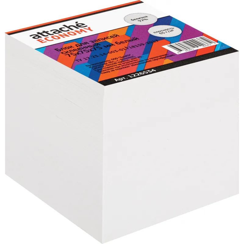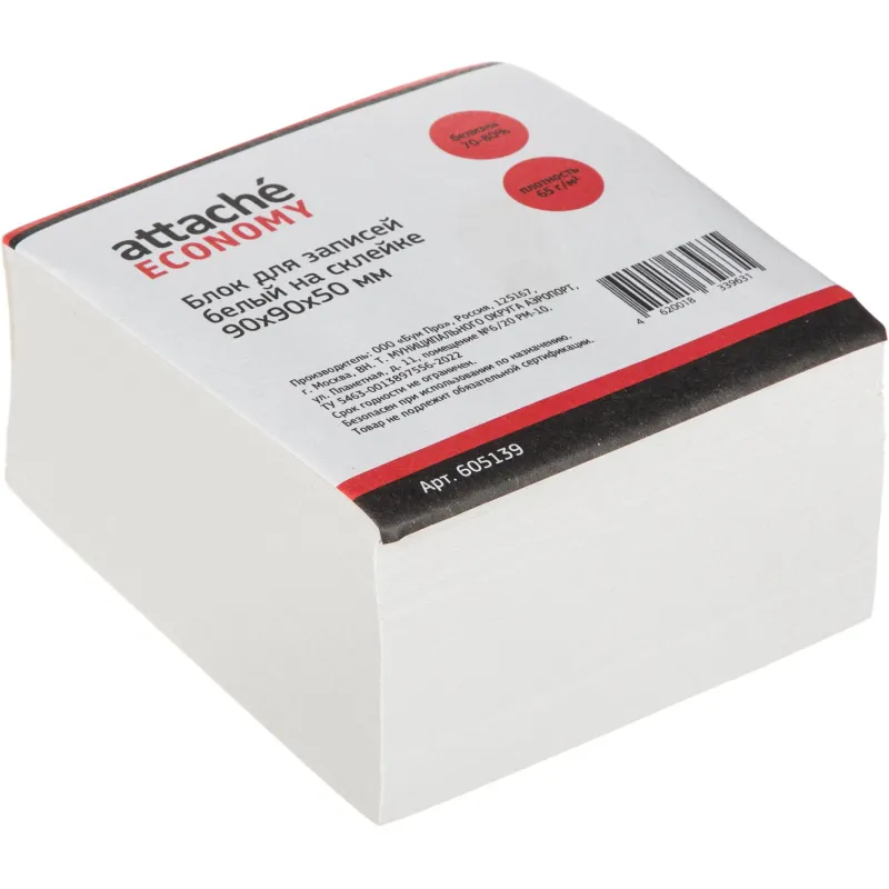 Блок для записей ATTACHE ЭКОНОМ на склейке 9х9х9 белый 60 г, 65