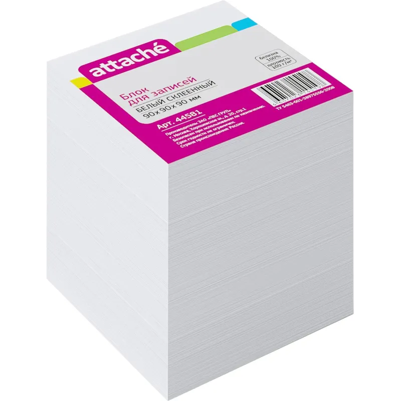 Блок для записей ATTACHE запасной 9х9х9 белый блок 80г, 3штуки/спайка