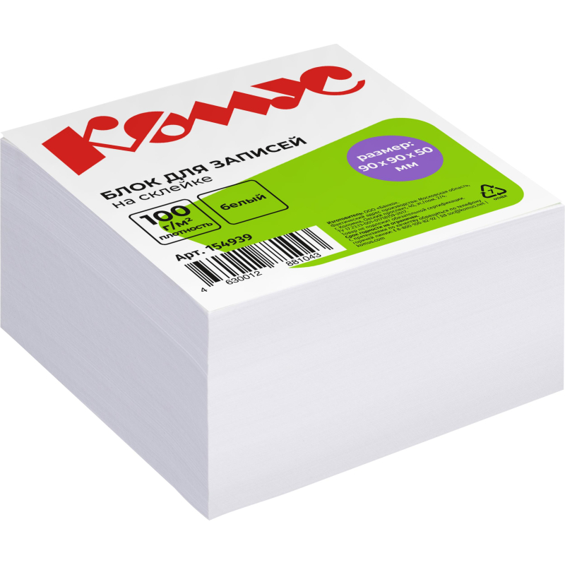 Блок для записей КОМУС запасной 9х9х5 белый блок 100г, 100% лого