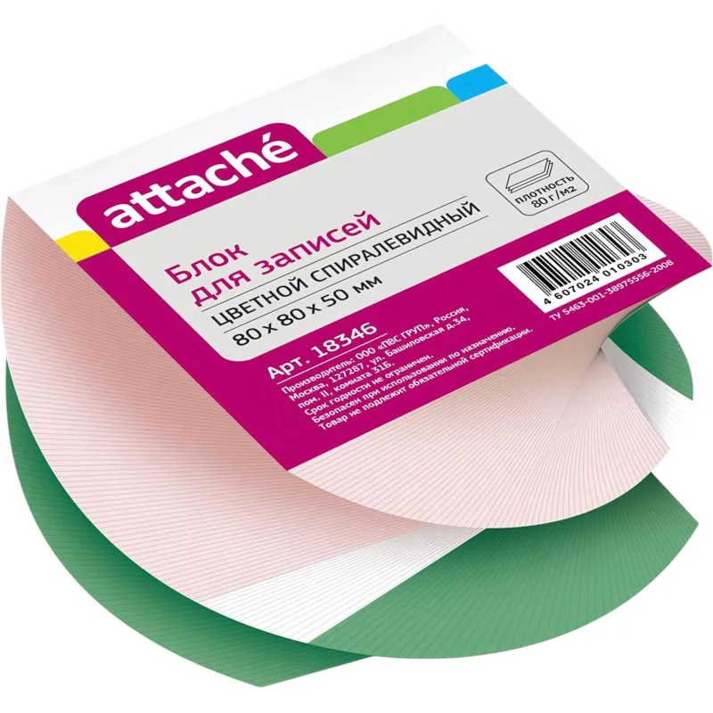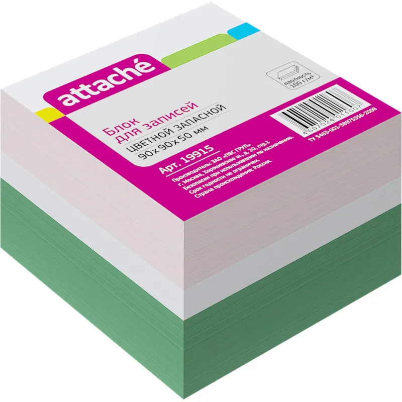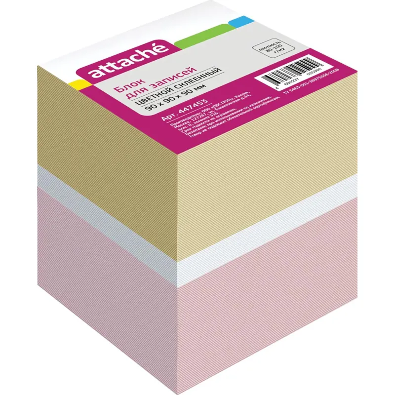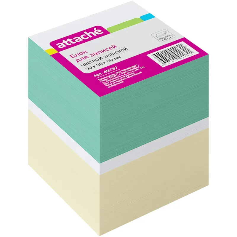 Блок для записей ATTACHE запасной 9х9х9 разноцветный 80г