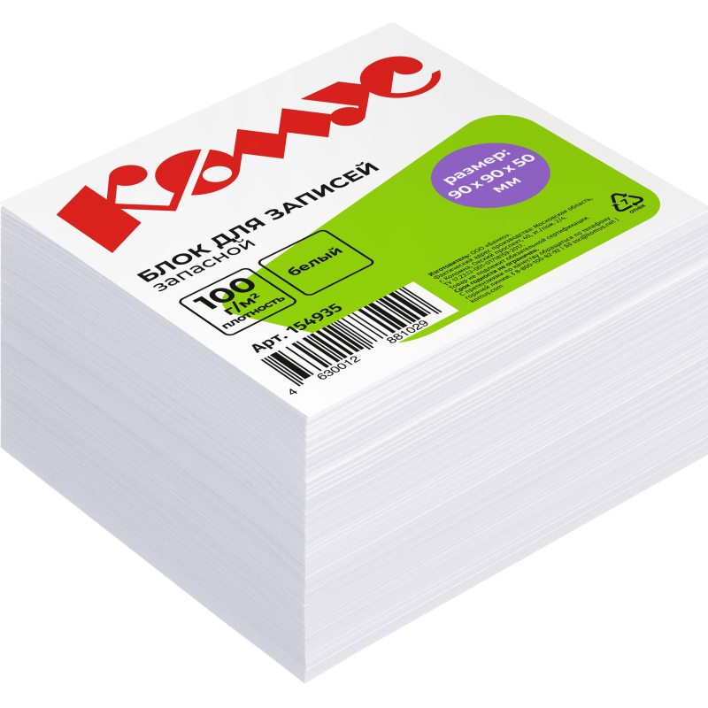 Блок для записей КОМУС запасной 9х9х9 белый блок/ 100г