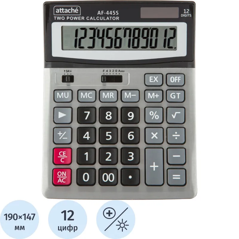Калькулятор настольный ПОЛНОРАЗМЕРНЫЙ Attache AF-445S,12р,дв.пит,серебр