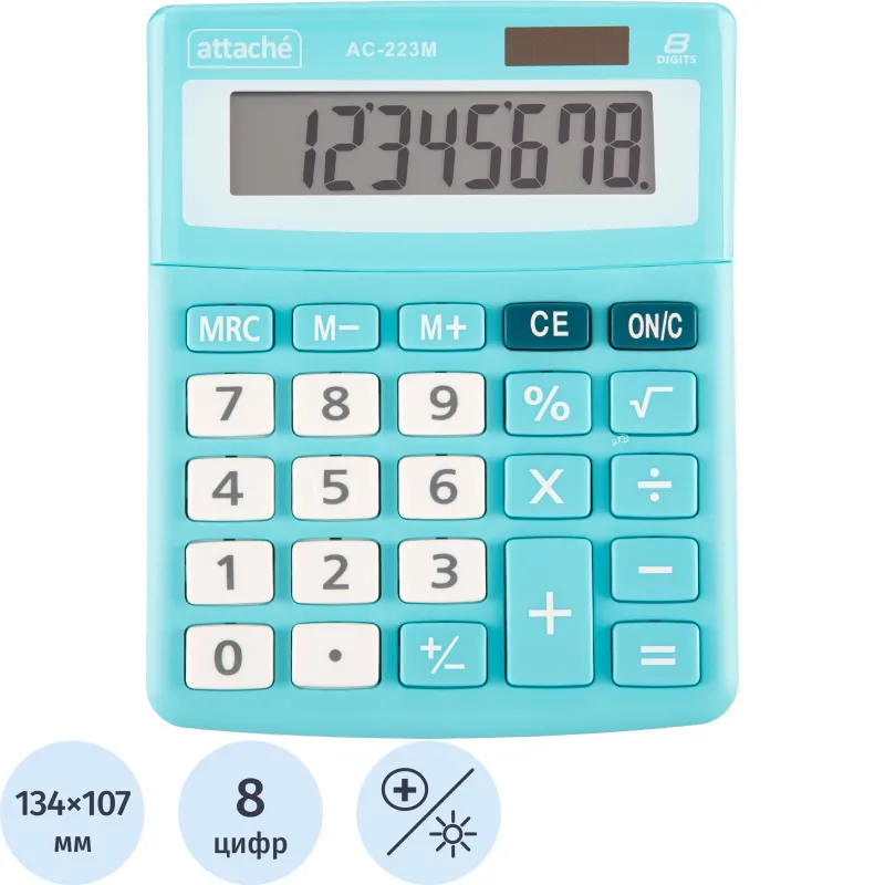 Калькулятор настольный КОМП Attache, AС-223M,8р,дв. пит, мятный,134x107x34