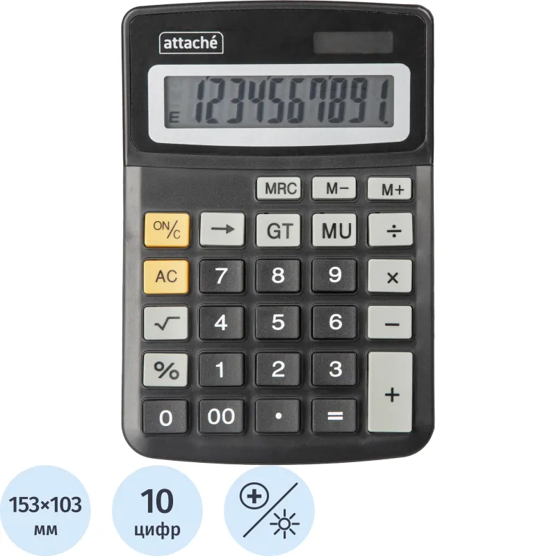 Калькулятор настольный КОМПАКТНЫЙ Attache ATC-777-10C 10-ти разрядныйчерн