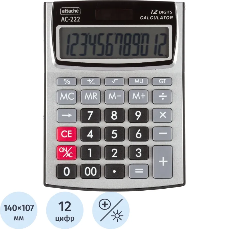 Калькулятор настольный КОМПАКТНЫЙ Attache AC-222,12р,дв.пит,144x107cереб
