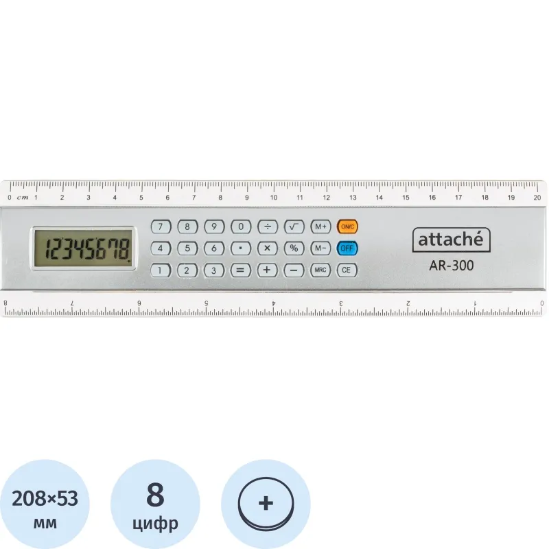 Калькулятор настольный с линейкой Attache AR-300, 8р., пит. от бат., серый