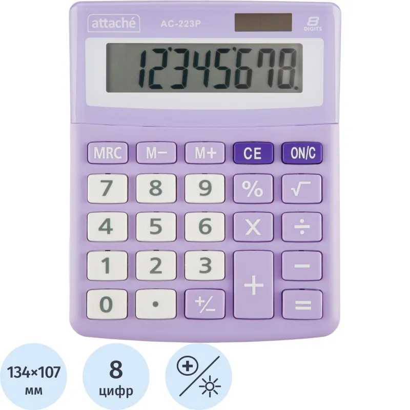 Калькулятор настольный КОМП Attache, AС-223P,8р,дв. пит, фиолет,134x107x34