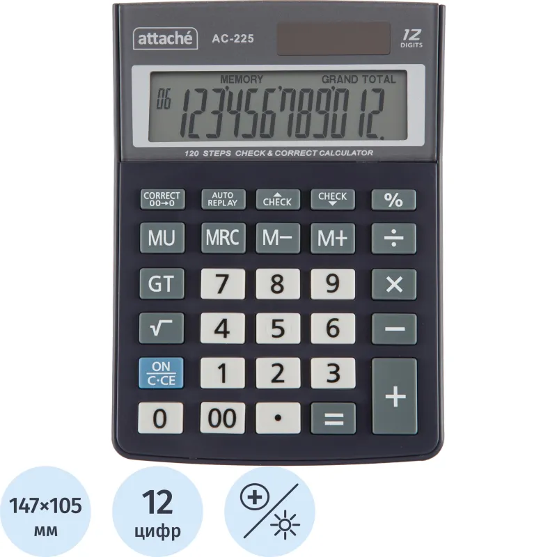 Калькулятор настольный КОМП Attache, AС-225, 12р, дв.пит, серый,147x105x33