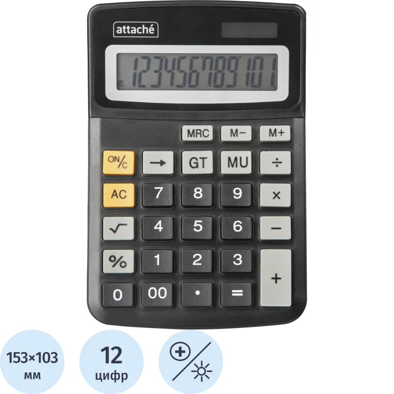Калькулятор настольный Attache CBM1201-BK 12-разрядный черный 137x102x31 мм