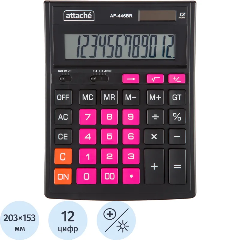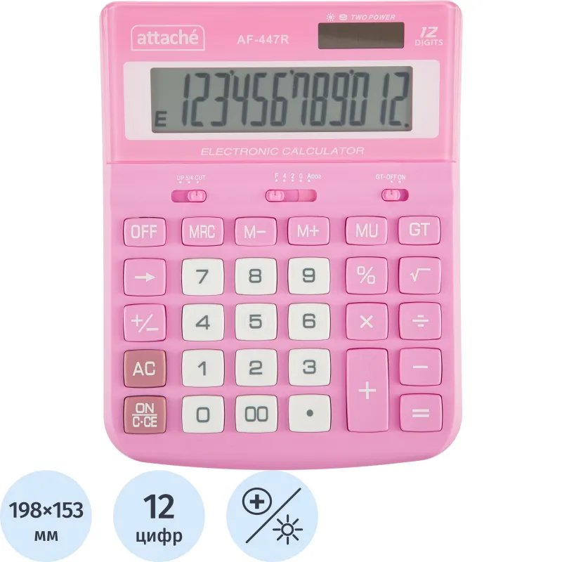Калькулятор настольный ПОЛНОРАЗМ Attache AF-447R,12р,дв.пит,роз,198x153x42