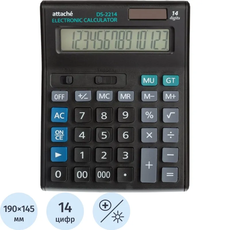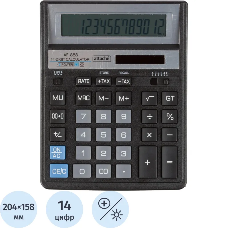 Калькулятор настольный ПОЛНОРАЗМЕРНЫЙ Attache 14 разр., черный