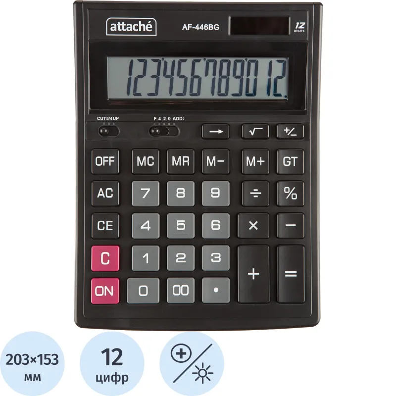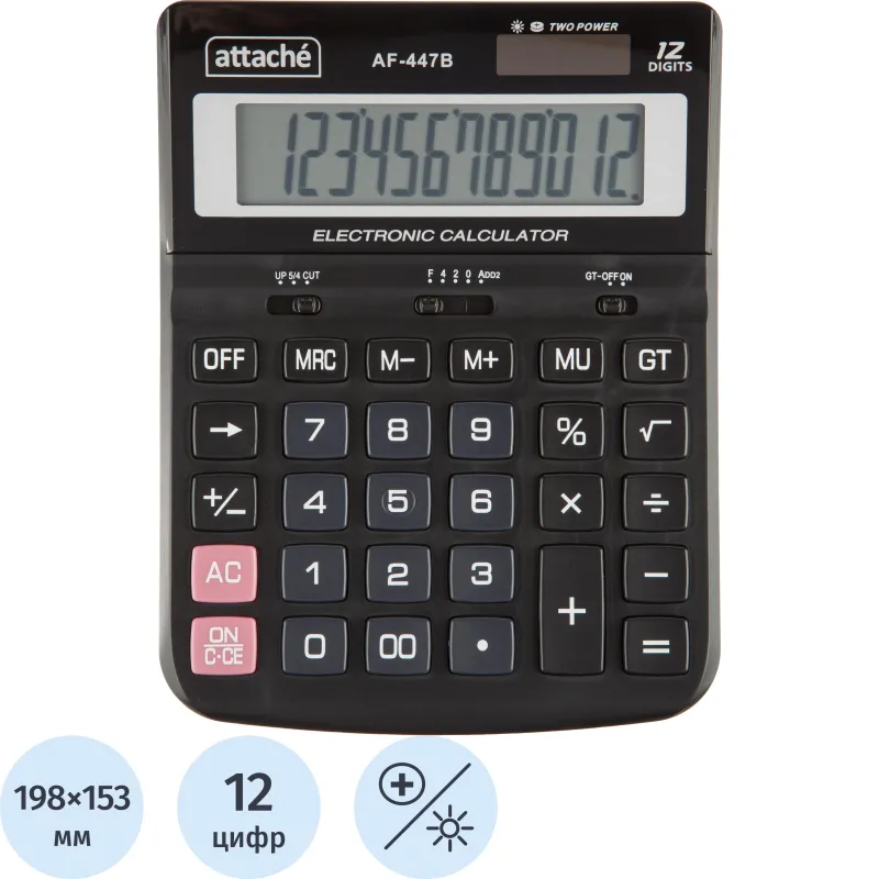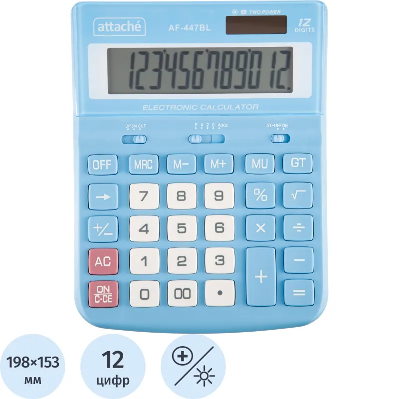 Калькулятор настольный ПОЛНОРАЗМ Attache AF-447BL,12р,дв.пит,гол,198x153x42
