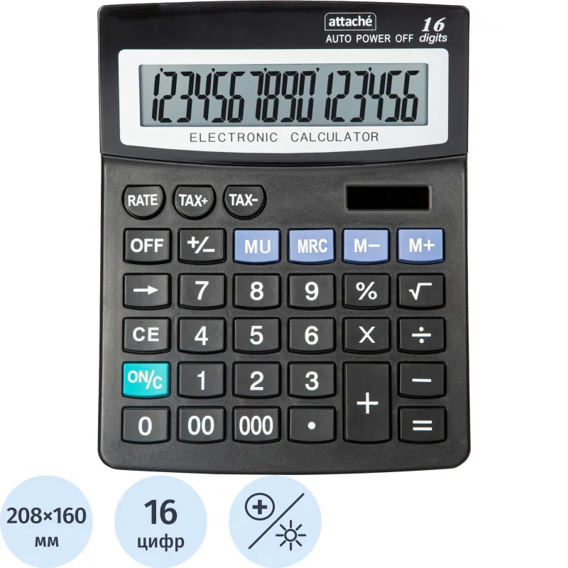Калькулятор настольный ПОЛНОРАЗМЕРНЫЙ Attache Economy 16 разр., черный