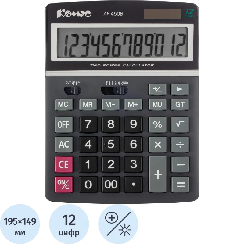 Калькулятор настольный ПОЛНОРАЗМЕРНЫЙ Комус AF-450B,12р,дв.пит,чрн