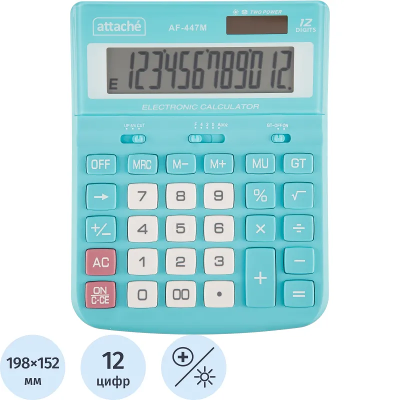 Калькулятор настольный ПОЛНОРАЗМ Attache AF-447M,12р,дв.пит,мятн,198x153x42