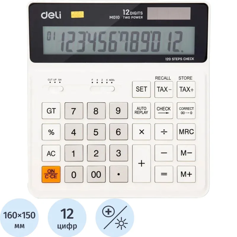 Калькулятор настольный БУХГАЛТЕРСКИЙ Deli EM01010 белый 12-разр