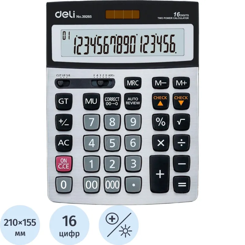 Калькулятор настольный ПОЛНОРАЗМЕРНЫЙ Deli E39265 серый 16-разр