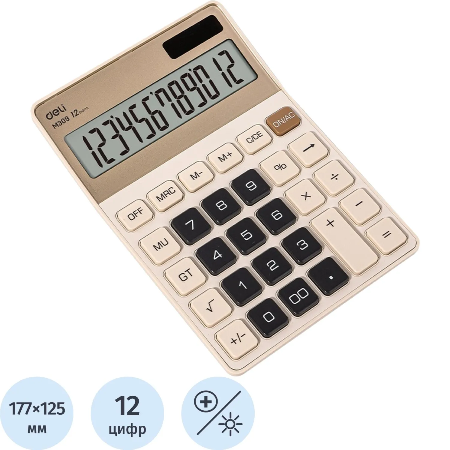 Калькулятор настольный Deli EM309,12 разрядов,дв пит,176,9x124,9x34мм,крем