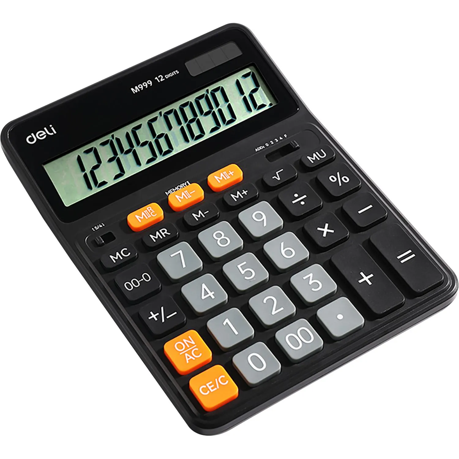 Калькулятор настольный ПОЛНОРАЗМ. Deli EM126,12-р,2стр,дв.пит,182х129мм,чер