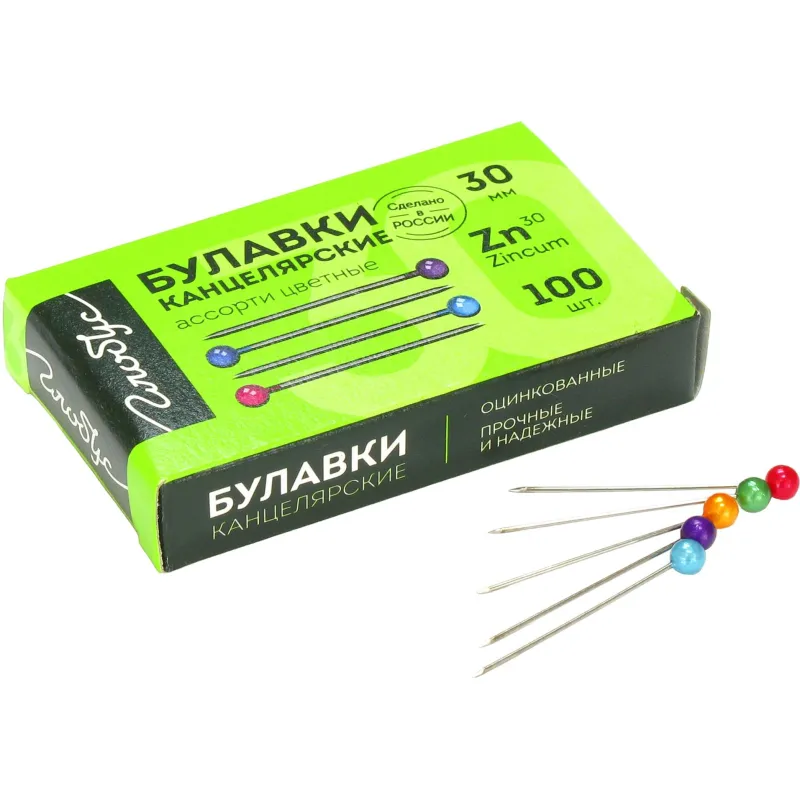 Булавки для пробковых досок Глобус 30 мм 100 шт цвет ассорти, карт уп