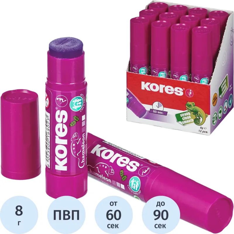 Клей-карандаш 8г KORES Chameleon (исчезающий цвет) 16802