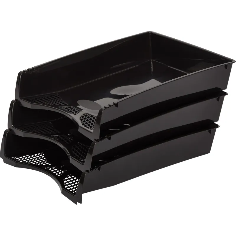 Горизонтальный лоток для бумаг используется в офисах с целью организации, сортировки и хранения всевозможных документов, оформленных в папку-скоросшиватель, скрепленных механическим степлером или просто разрозненных листов.. Большое преимущество этих канцелярских принадлежностей заключается в возможности установки их один на другой, что позволяет экономить пространство и освобождать место на рабочем столе.