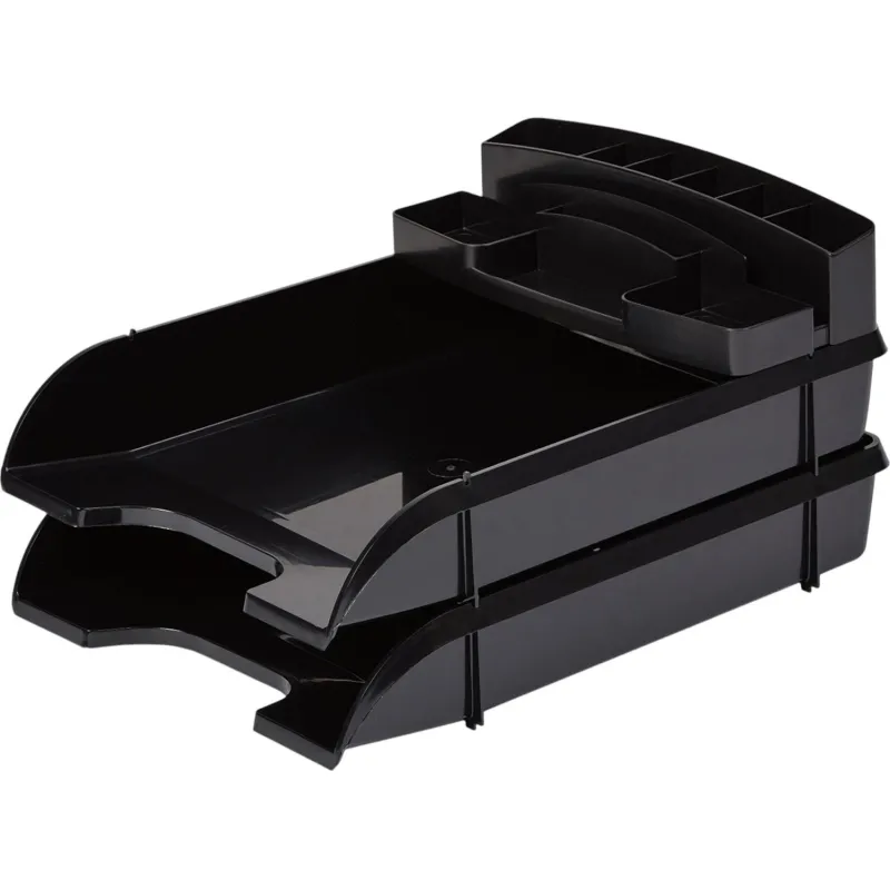 Горизонтальный лоток для бумаг используется в офисах с целью организации, сортировки и хранения всевозможных документов, оформленных в папку-скоросшиватель, скрепленных механическим степлером или просто разрозненных листов.. Большое преимущество этих канцелярских принадлежностей заключается в возможности установки их один на другой, что позволяет экономить пространство и освобождать место на рабочем столе.