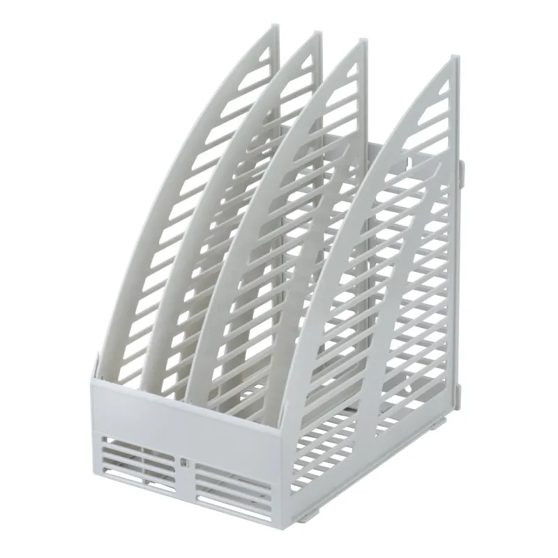 Вертикальный лоток из пластика может быть как цельным, так и сетчатым. Также есть модели, выполненные в разных цветовых гаммах. Они не только позволят легко ориентироваться, где какие документы находятся, но и станут стильным дополнением интерьера помещения.