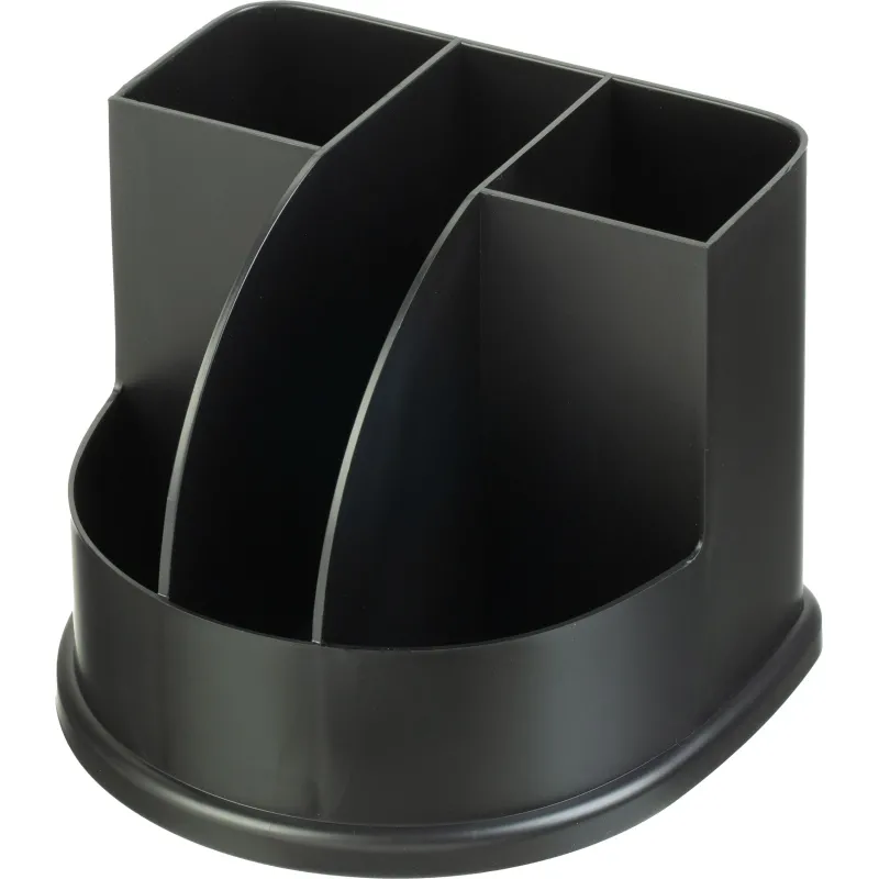 - Количество отсеков. Если он один, в такой подставке удобнее хранить однородные или схожие по размерам предметы: карандаши, фломастеры, ручки. Чтобы систематизировать предметы разного формата и назначения, лучше выбирать вариант с несколькими отсеками.