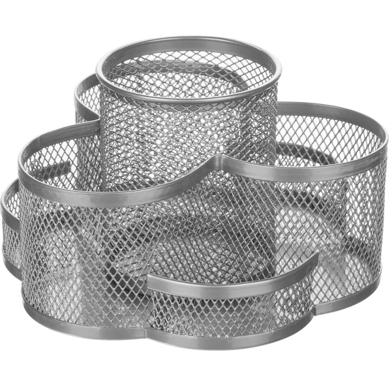 - Металл. Это эргономичные конструкции из окрашенной металлической сетки. Благодаря перфорации искать нужные канцелярские принадлежности в такой емкости удобно, даже если те находятся ниже края. Стоят такие изделия чуть дороже, чем пластиковые.