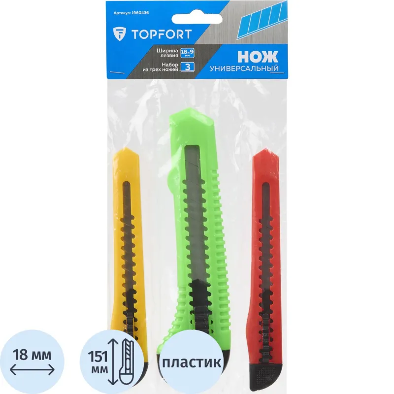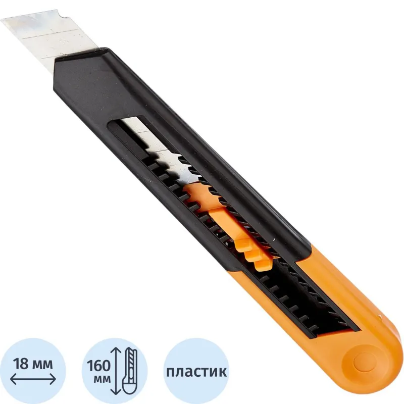 Наиболее распространены ножи канцелярские с шириной лезвия 18 мм. Они более прочные, надежные и долговечные, по сравнению с 9-миллиметровыми аналогами, способны разрезать бумагу различной толщины и плотности.